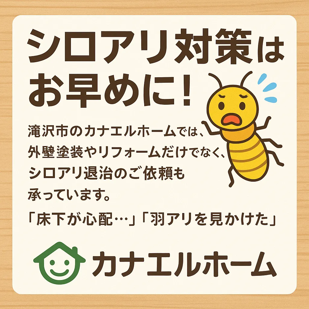滝沢市のカナエルホームでは、外壁塗装やリフォーム工事に加えて、シロアリ退治のご依頼も承っております。